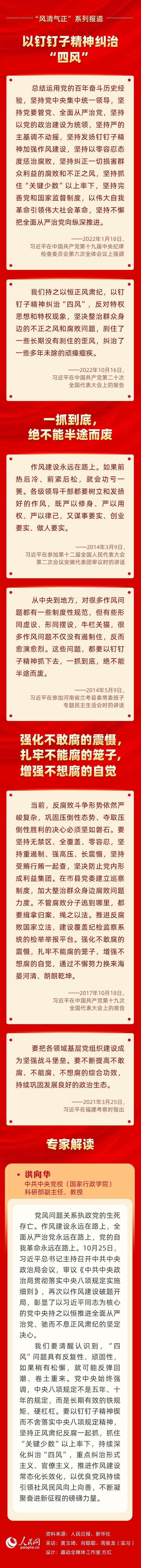 2012年12月4日,中共中央政治局会议审议通过了关于改进工作作风、密切联系群众的八项规定。十年来,以习近平同志为核心的党中央把中央八项规定作为加强作风建设的切入点、全面从严治党的突破口,坚持不懈落实中央八项规定精神、驰而不息纠正“四风”,写下作风建设新篇章,开创全面从严治党新局面。人民网推出“风清气正”系列图解并邀请专家进行解读。